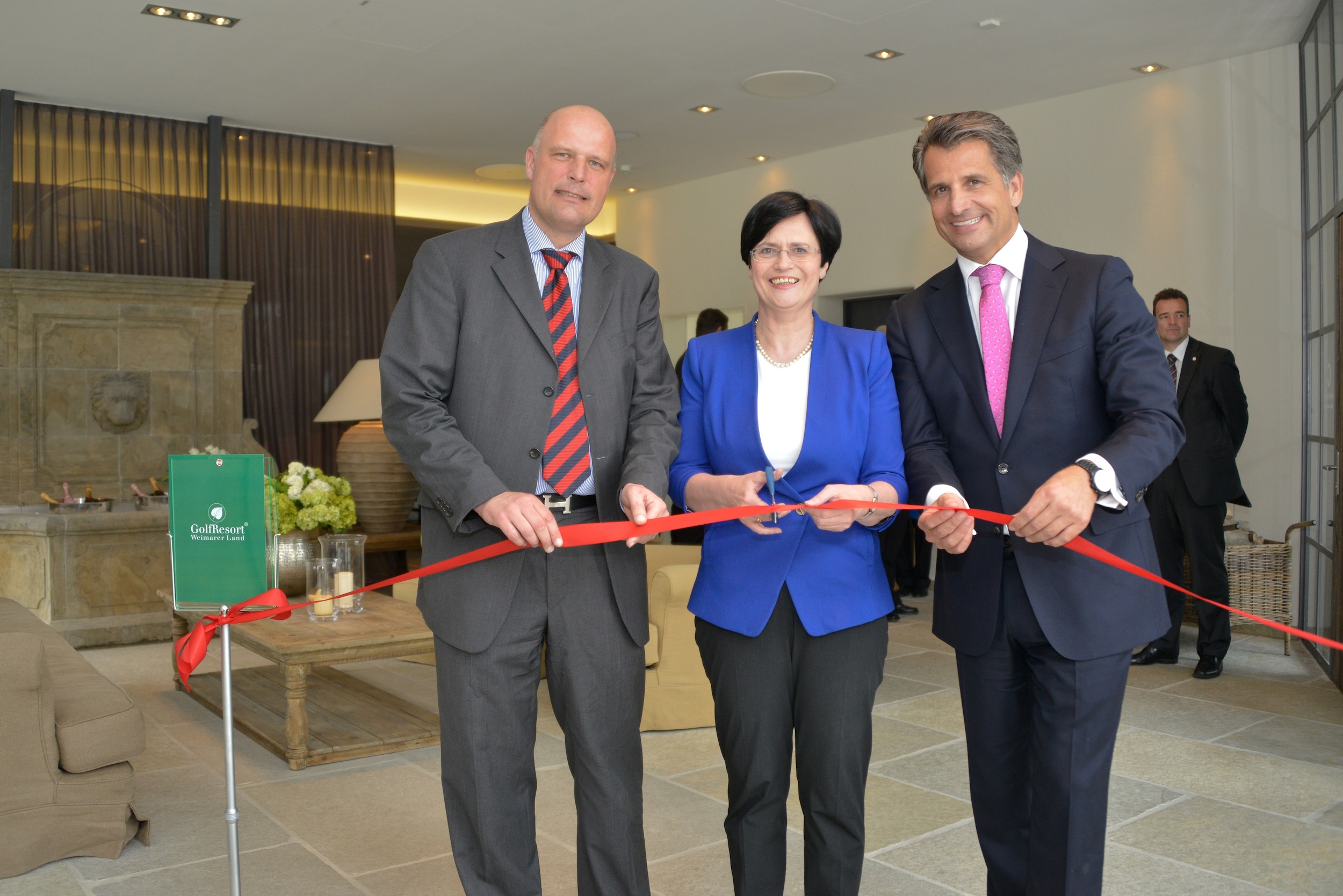 - Ein Foto zur Eröffnung mit Matthias Grafe, Geschäftsführer der Spa- und Golf Resort Weimarer Land Betriebs GmbH; Christine Lieberknecht, Ministerpräsidentin; Otto Lindner, Vorstand Lindner Hotels AG: http://tinyurl.com/akwgrtp (6MB Download startet)