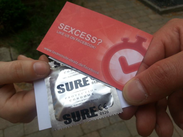 (IINews) - Berlin, 17. Mai 2013. Unter dem Motto ?Sexcess?? verschenkt das Berliner Start-Up Lastminute-Dealz beim Umzug des Karneval der Kulturen in Berlin 1.000 Kondome. ?Karneval steht für Freude, Fröhlichkeit und, jeder echte Karnevalist weiß dies, für Sex?, erklärt Till Förster, Geschäftsführer der LmD Lastminute-Dealz GmbH: ?Für alle spontanen Menschen, die unvorbereitet zum Karneval erschienen sind, haben wir Sicherheit dabei.? Durch diese Guerilla-Aktion wolle das junge Berliner Unternehmen die Bekanntheit weiter steigern und den Markteintritt vorbereiten.