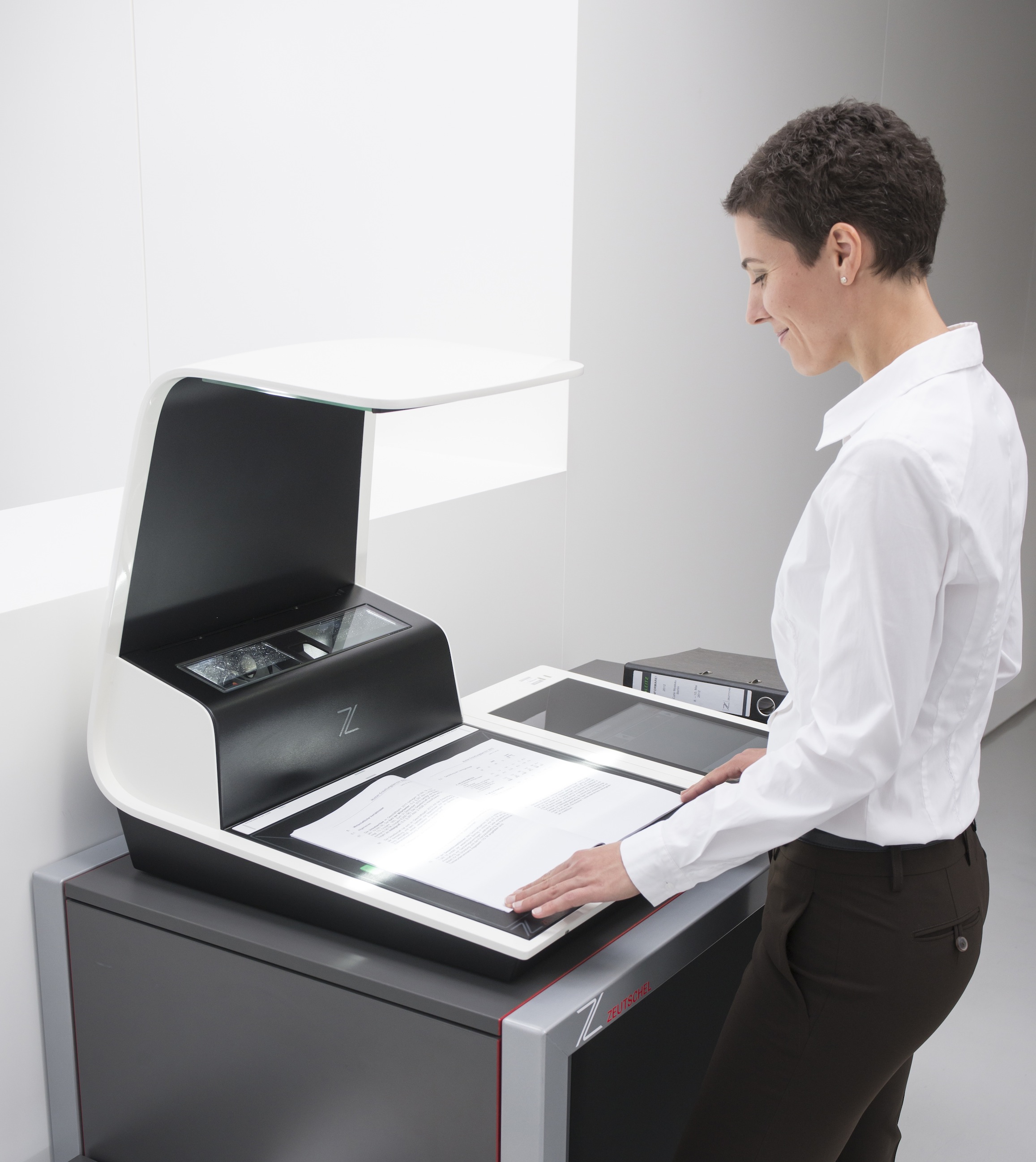 Mehr und mehr Anwender aus unterschiedlichsten Branchen nutzen die Vorteile des Aufsichtsscannens für Büro-Anwendungen. Beim Zeutschel zeta werden die Aktenordner, Ringbücher, Verträge oder Zeitschriften einfach aufgeschlagen und von oben gescannt.