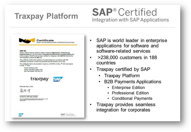 "TRAXPAY PLATTFORM ZUR ECHTZEITVERARBEITUNG VON B2B-FINANZTRANSAKTIONEN ERHÄLT SAP ZERTIFIZIERUNG FÜR DIE INTEGRATION IN SAP® ERP"