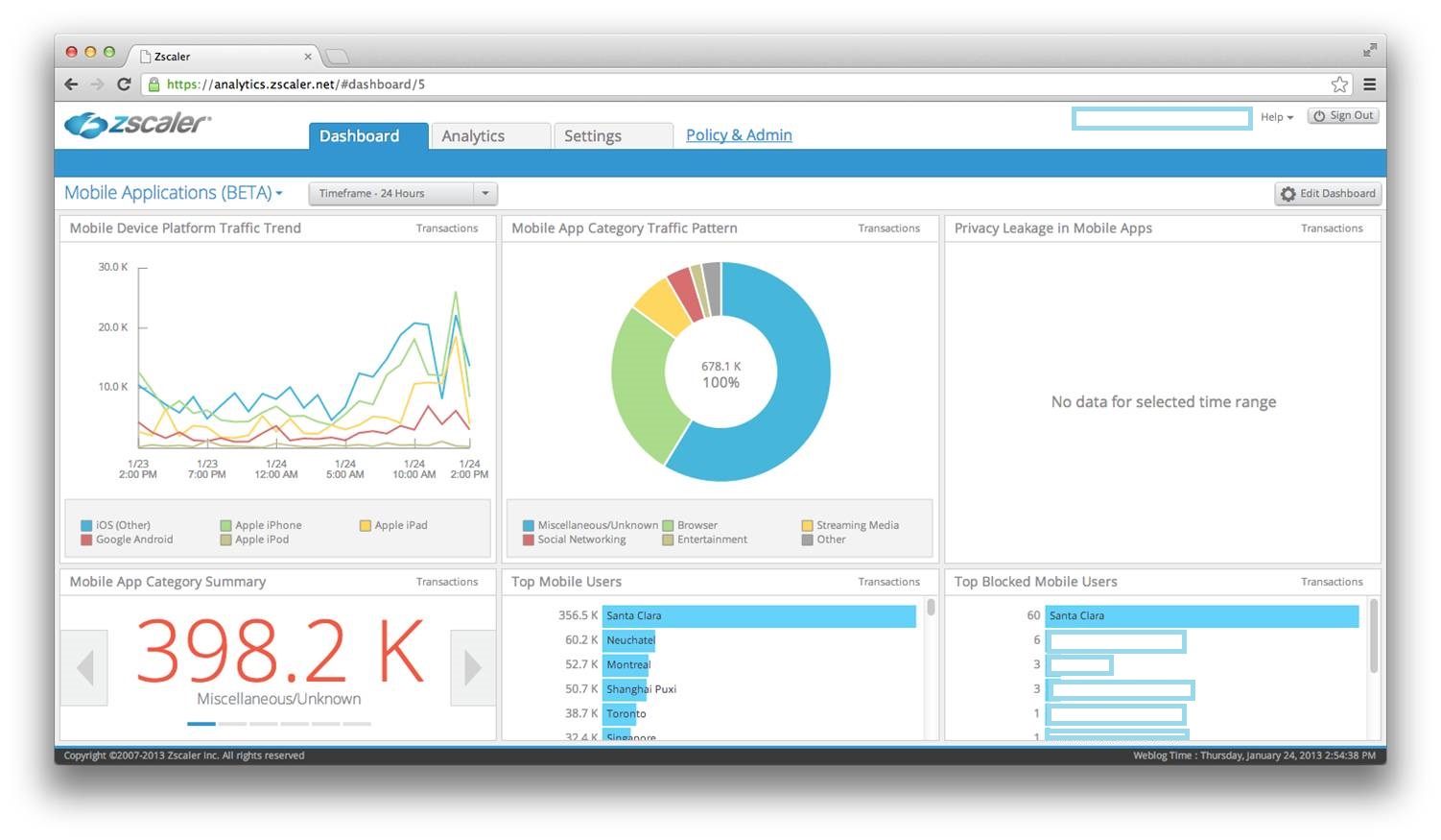Mobiles Echtzeit Monitoring und Reporting - Zscaler sorgt für sofortigen Zugriff auf die Auswertung der weltweiten Daten eines Unternehmens und gibt Einblick in den Datenverkehr mobiler Anwendungen im Unternehmensnetzwerk, ohne dass damit aufwändiges Batch-Reporting, Srcipts oder Wartezeiten einhergehen.