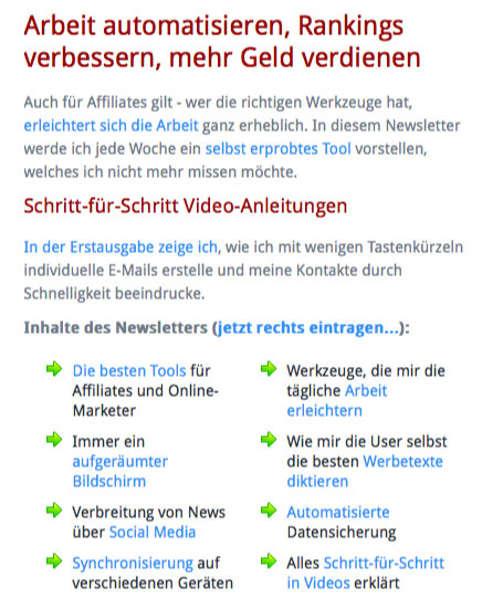 Durch Automatisierung von Prozessen können Affiliate- und Onlinemarketer viel wertvolle Zeit sparen und profitabler arbeiten. Welche Tools sich dafür bewährt haben und wie diese genau einzusetzen sind erklärt Karsten Windfelder, Betreiber des Infoportals 100partnerprogramme.de, in seinem wöchentlichen Newsletter zu diesem Thema.