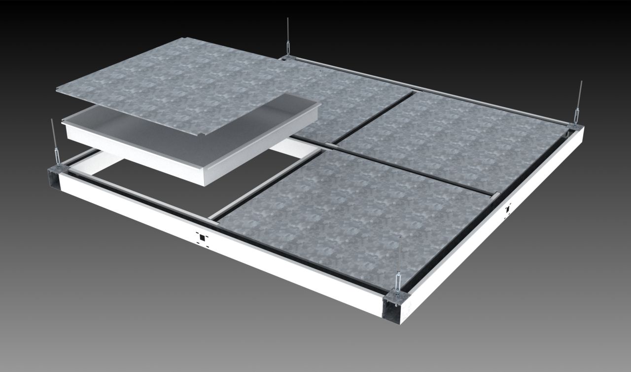Auf Grund der Anforderungen aus dem Lastenheft waren teilweise Neu- oder Weiterentwicklungen bestimmter Produkte nötig, so auch für die begehbare Reinraumdecke. Das System, welches im Wesentlichen aus Stahlbandrastern in Kreuzbauweise, eingehängten Deckenplatten und aufgelegten Begehblechen besteht, wurde in kürzester Zeit nach den Anforderungen der ISO 9001:2008 des TÜV Süd weiterentwickelt. Des Weiteren wurde eine projektspezifische Lösung für die schwingungsentkoppelte Deckenabhängung von einer Stahlkonstruktion realisiert. Nach ausgiebigen Belastungstests, statischen Berechnungen und Auszugsversuchen, welche einer strengen Protokollierung und Fotodokumentation unterlagen, wurde das Deckensystem Line 80S Typ 2 in einem 1:1 Muster vor Ort beim Kunden aufgebaut.