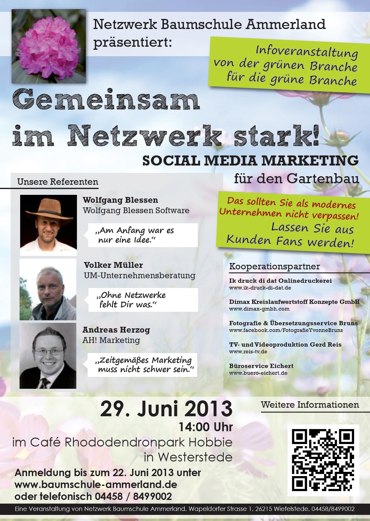 Die Veranstaltung "Gemeinsam erfolgreich im Netzwerk - Social Media Marketing für den Gartenbau" richtet sich an die grüne Branche und alle diejenigen, für die das dialogorientierte Thema Social Media interessant ist. Anmeldungen sind unter www.baumschule-ammerland.deund telefonisch unter 04458 8499002 möglich.