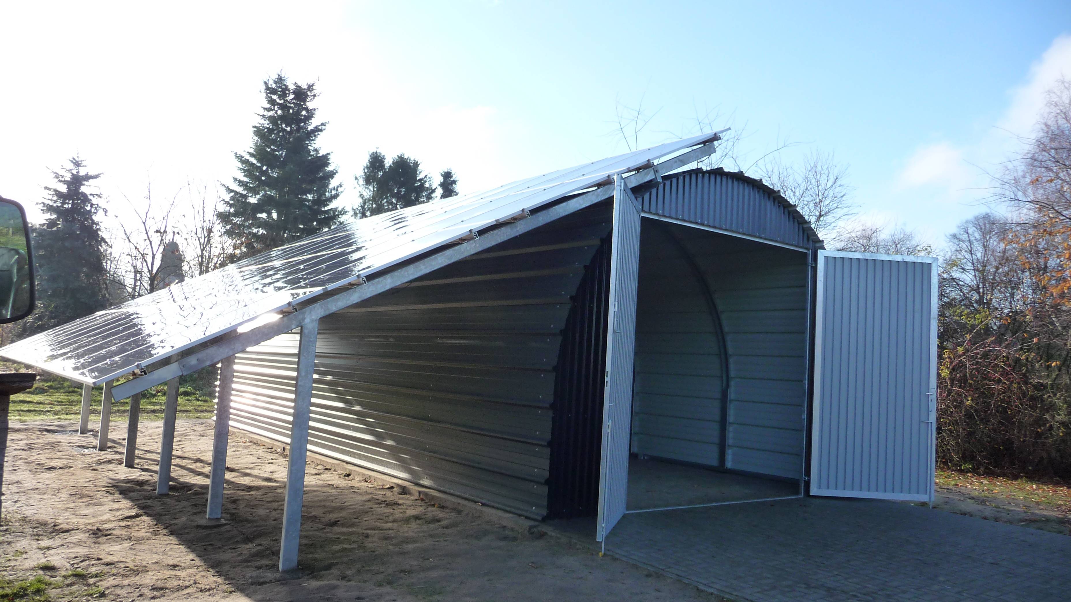 Unveränderlich ist nur die Qualität der Teile: Unterkonstruktion und Rundbögen bestehen aus feuerverzinkten Hohlraumprofilen (120x60x4 / QR 60x4) und zeichnen sich durch eine lange Lebensdauer aus. Die Dacheindeckung erfolgt mit beschichteten Trapezblechen in einer Grundstärke von 0,75 mm. Die Schneideschrauben sind aus rostfreiem Stahl. Idee und Entwicklung bis zum marktreifen Produkt stammen aus dem Hause Schlosserei Frank GmbH, das auch exklusiv für Fertigung und Vertrieb steht. So profitiert der Kunde vom direkten Kontakt mit dem Hersteller und kann auf ein faires Preis-Leistungsverhältnis zählen.