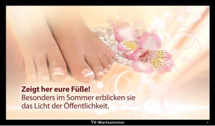 So sollten Patienten, die unter einem diabetischen Fußsyndrom leiden, regelmäßig zur medizinischen Fußpflege gehen, denn durch die Nervenerkrankung können Verletzungen, Wärme- und Kältereize nicht mehr wahrgenommen werden. Die Folge sind häufig schlecht heilende Wunden. „Mit unseren Filmen erreichen wir monatlich etwa fünf Millionen Patienten und deren Angehörige und leisten so einen Beitrag zur enorm wichtigen Patienteninformation und -aufklärung. Wer weiß schon, dass Fußpflege auch eine Kassenleistung ist!“, erklärt Markus Spamer, Gründer und Geschäftsführer von TV-Wartezimmer. Unsere Füße haben – nicht nur zur Sommerzeit – gute Pflege verdient, tragen sie uns doch ein Leben lang!