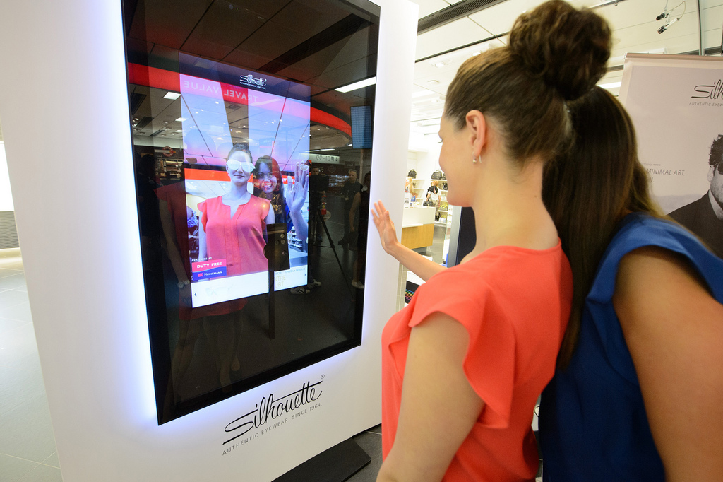 (IINews) - Der Silhouette iMirror steht für die Idee, Brillenkäufern mittels Augmented Reality ein authentisches Probieren zu ermöglichen, noch bevor sie zur Beratung zum Händler kommen. Bislang geschah dies im Web und als App. Jetzt gibt es den iMirror auch "in groß" zur Vorinformation am Point of Sale. Seit 4. Juli steht ein solcher Digital Signage Mirror für Silhouette Sonnenbrillen bei Heinemann Duty Free am Vienna International Airport. Diese Woche wurde die Installation der Öffentlichkeit vorgestellt.