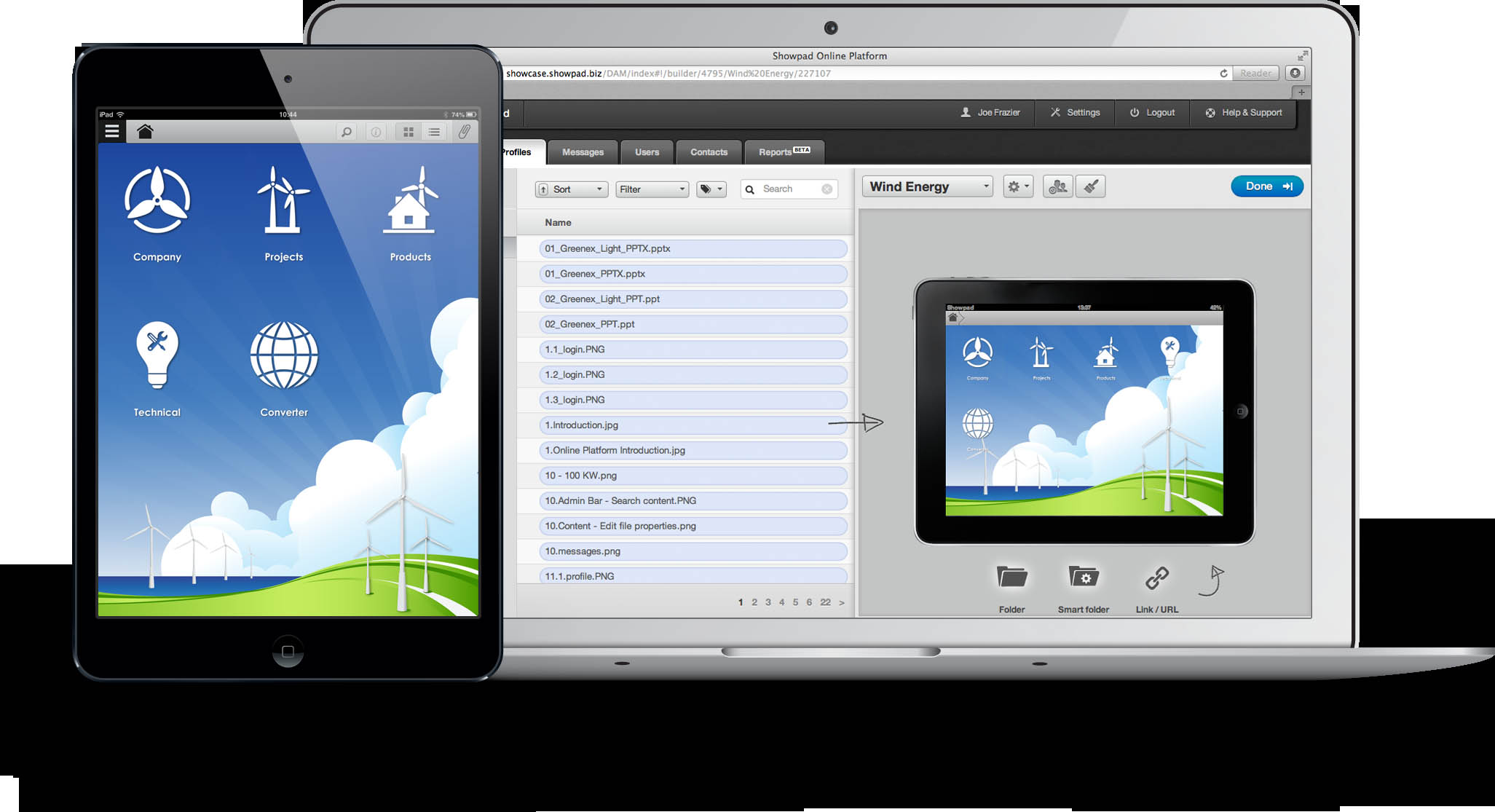 Showpad besteht aus einem Online-Portal und einer dazugehörigen App. Über das Portal konfiguriert die Marketingabteilung die App, verwaltet und aktualisiert die Vertriebsmaterialien und verteilt diese an das Vertriebsteam. Die Sales-Mitarbeiter erhalten über die App somit jederzeit Zugriff auf die neuesten, freigegebenen Materialien und können diese dem Kunden direkt über das iPad präsentieren oder zuschicken. Dies ersetzt etwa gedruckte Broschüren oder auch Formulare, in die Kundeninformationen eingetragen und erst zeitverzögert in das CRM-System übertragen werden.
