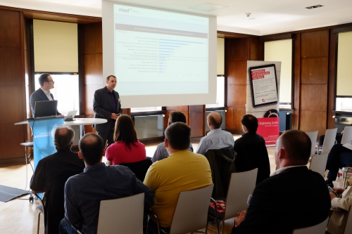 Der dritte Vortrag wurde vom diesjährigen Partner des Techdays, dem IT-Dienstleister mod IT GmbH aus Einbeck, übernommen. Die Hannoveraner Experten Philipp Boos und Daniel Wolf stellten das Thema Das Smartphone in der Mitarbeitertasche in den Fokus und erläuterten, dass statistisch gesehen rund 14% der Arbeitnehmer das Smartphone geschäftlich nutzen, die Gebühren allerdings vom Arbeitgeber übernommen werden. 23% hingegen nutzen es geschäftlich - zahlen allerdings selber und die übrigen 63% nutzen ihr Smartphone privat. Hinsichtlich der Nutzung eines Smartphones als BYOD-Strategie (Bring Your Own Device) im Unternehmen gaben die Referenten allerdings zu bedenken, dass bei der Integration von Smartphones in die Betriebsabläufe die Datensicherheit zwingend gewährleistet bleiben muss. Ein zentrales Management der Geräte ist die Grundlage für die sichere Einbindung in die Unternehmens-IT, so Philipp Boos. Als vorbildhaftes Beispiel wurden dafür die Funktionen der Toolkette Good for Enterprise aufgezeigt, welche beispielsweise zwischen Firmendaten und privaten Daten unterscheiden kann. Als Administrator hat man sogar die Möglichkeit Smartphones zu verwalten, zu steuern und zu überwachen. Ferner bietet das Produkt die Möglichkeit, Geräte über das Internet zu löschen, wenn diese verloren gehen (Remote Wipe).