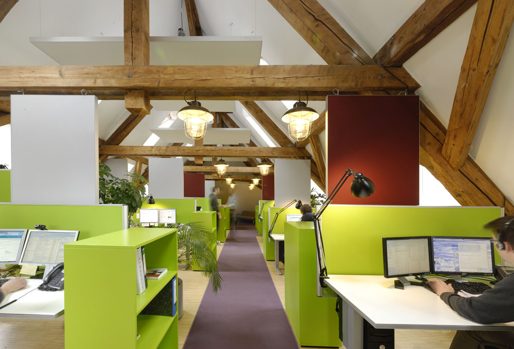 Nach der Erweiterung seines Service-Teams im vergangenen Herbst hat Techpilot in den Umbau des Kundendienst-Zentrums investiert. Unter der Leitung des Architekturbüros Vonmeiermohr entstand ein moderner Arbeitsbereich mit verbesserter Akustik für die ungestörte Kommunikation. Bei der Neukonzeption spielten auch aktuellste ergonomische und farbpsychologische Erkenntnisse eine wesentliche Rolle. "Mitarbeiter, die sich wohlfühlen, liefern auch einen erstklassigen Service", unterstreicht Kundendienstleiter Rogé Gronenwald die Wichtigkeit der Maßnahmen. Die runderneuerten Räumlichkeiten befinden sich in einem ehemaligen Transformatorenwerk, dem Techpilot Stammsitz in München. Das Bindeglied zur historischen Gebäudesubstanz bilden neben der offenen Dachkonstruktion die Leuchten aus einer aufgelassenen Industriefertigung in Ostdeutschland.