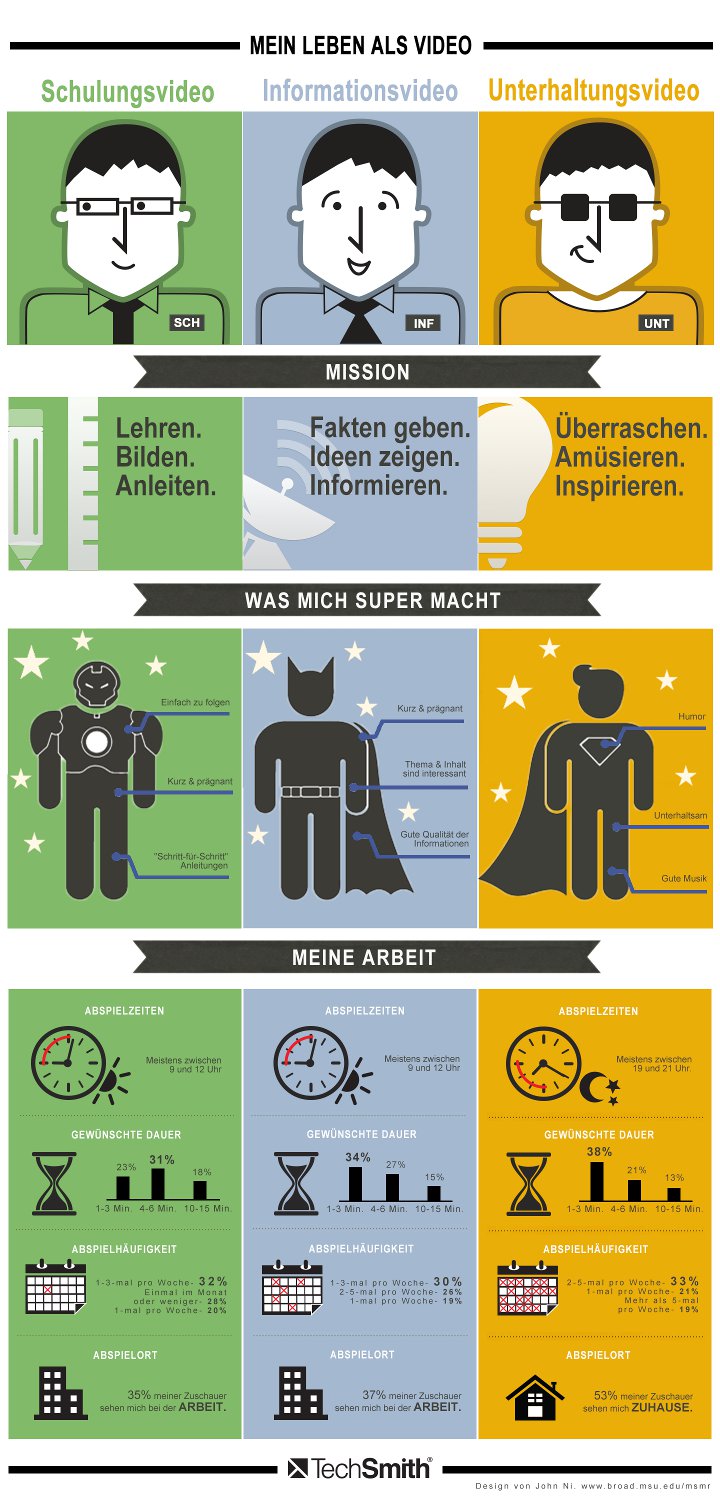 - Videolänge: Dabei ist ihnen vor allem die Länge des Videos wichtig. Während ein lustiger Clip idealerweise ein bis drei Minuten lang sein sollte, sind Schulungsvideos der Mehrheit nach zwischen vier und sechs Minuten lang.