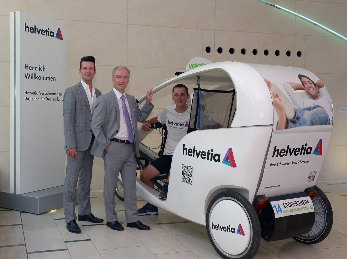 Ab August rollen zwei Velotaxis der Helvetia durch Frankfurt. Im Rahmen einer Kooperation mit dem Unternehmen Velotaxi Frankfurt nutzt der Schweizer Versicherer die weiße Karosserie der Dreiräder als Werbefläche. "Mit der Umwelt ist es wie mit Versicherungen - es kommt auf Nachhaltigkeit an", erklärt Wolfram Wrabetz, CEO der Helvetia Deutschland. "Wir zeigen, dass unternehmerisches Handeln durchaus mit den Ansprüchen einer umweltbewussten Gesellschaft im Einklang stehen kann."