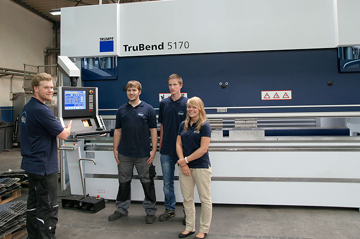 Hof CNC-Blechbearbeitung aus Hessen schaut weiter nach vorn: Rechtzeitig zum Beginn des neuen Ausbildungsjahres konnte die TruBend 5170 im Beisein der neuen Auszubildenden Jonathan Herbert, Martin Schäpers und Ann-Kathrin Bernhardt in Betrieb genommen werden. Jonathan Herbert macht eine Ausbildung zum Konstruktionsmechaniker, Martin Schäpers lernt Maschinen- und Anlagenführer. Ann-Kathrin Bernhardt ist die erste kaufmännische Auszubildende und angehende Industriekauffrau.