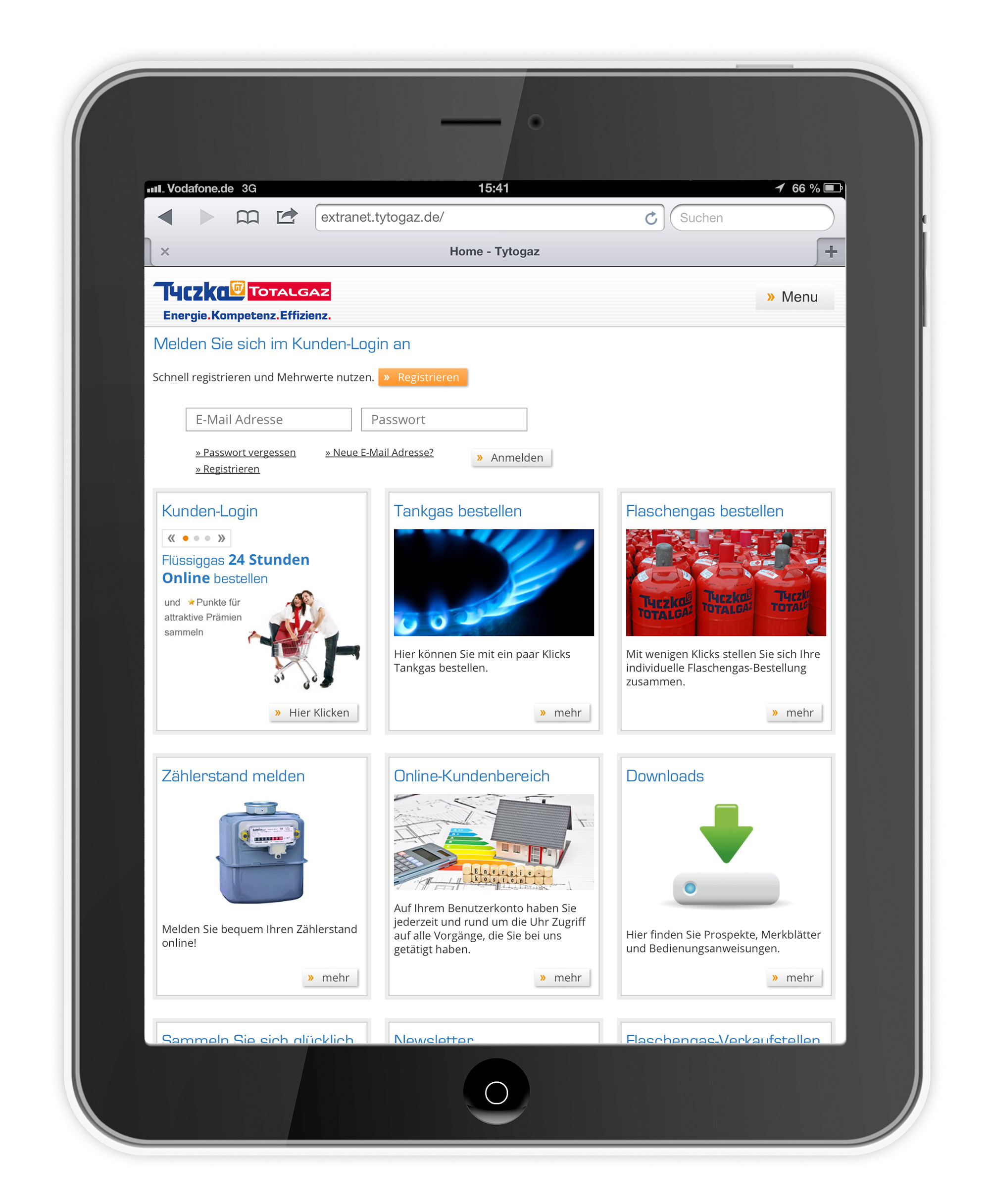 Generell spielte die Benutzerfreundlichkeit für Tyczka Totalgaz eine zentrale Rolle beim Relaunch des geschützten Kundenbereichs. Angefangen beim Registrierungsprozess, der jetzt sehr einfach und somit kundenfreundlich ist, bis hin zur Vereinheitlichung der Bestellprozesse für Flüssiggas in Tank und Flasche.