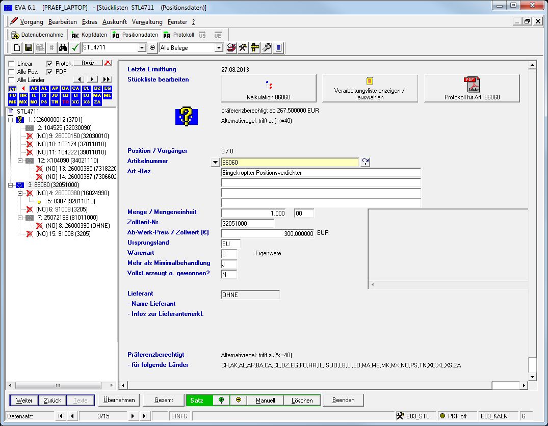 Um die Vorteile von Zoll-Präferenzen beim Versand in die entsprechenden Vertragsstaaten der EU voll ausschöpfen zu können, ist eine rechtssichere, klare und transparente Darstellung der Herkunft jeder einzelnen gehandelten Komponente oder jedes Teils zusammen mit einer Dokumentation unerlässlich. Schon geringe Ungenauigkeiten können im Falle einer Außenwirtschaftsprüfung sehr prekäre Folgen haben. Für viele exportierende Unternehmen, vor allem aus Chemie, Maschinenbau und Automobilproduktion, ist die rechtssichere, transparente und stets nachvollziehbare Präferenzkalkulation aufgrund weiter steigender behördlicher Anforderungen, dem hohen Zeitaufwand sowie einer entsprechenden Fehleranfälligkeit meist eine große Herausforderung. Das EVA-System bietet ein ausgereiftes und hochentwickeltes Modul für die sichere Präferenzkalkulation, das bereits seit Jahren in unterschiedlichsten Branchen erfolgreich im Einsatz ist. Für die ungleich komplexeren Abläufe innerhalb von Unternehmensgruppen ist die neue EVA-Multi-Company Funktion ein äußerst hilfreiches Werkzeug zur sicheren, einfachen und effizienten Ermittlung von Präferenzen, das auch berechtigungskreisübergreifend agiert.