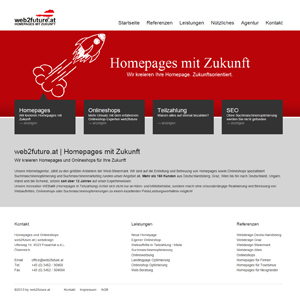 Web2future gibt die Eröffnung einer Zweigstelle in Fürstenfeld bekannt. Die Internetagentur Web2future zählt zu den führenden Anbietern von Web-Dienstleistungen in der West-Steiermark. Sorgfalt, Präzision und Kundenorientierung zählen zu den Hauptprinzipien, die Web2future seit nunmehr 13 Jahren definieren und ein Garant für den dauerhaften Erfolg des Unternehmens sind.