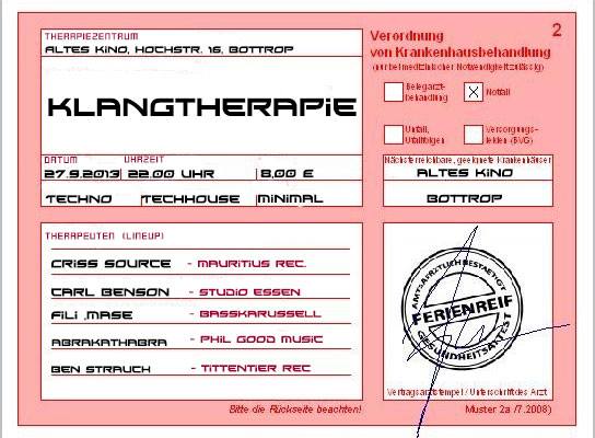 Zur Klangtherapie reichen wir Techno, Techhouse & Minimal in einer Glücklich machenden Mischung.