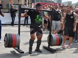 (IINews) - Im Rahmen des Vegan-Vegetarischen Sommerfests in Berlin hat Patrik Baboumian (34) am Samstag vor mehreren hundert Zuschauern auf dem Alexanderplatz einen Weltrekord aufgestellt: er hob eine 555 kg schwere Metallkonstruktion an und trug diese 10 Meter weit.