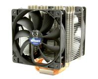 Ein wenig Optimierungsbedarf, insbesondere in Hinsicht auf eine noch bessere Kühlleistung, ge-paart mit einer geringeren Lautstärke, hat PC Games Hardware beim verbauten 120-Millimeter-Glide Stream-Lüfter gesehen. Da bereits ein langsameres Lüfter-Modell alle auf dem Markt befind-lichen Prozessoren ausreichend kühlt, kommen beim Mugen 4 PCGH-Edition nicht nur ein neuer Glide Stream-Lüfter mit 800 Umdrehungen pro Minute (SM1225GF12SL) zum Einsatz, sondern gleich zwei! Die beiden Modelle, die in einer Push/Pull-Ausrichtung arbeiten, besitzen einen Schalldruckpegel von nur 12,5 dbA, befördern dabei aber je 43,5 CFM Luft durch den Kühlkörper.