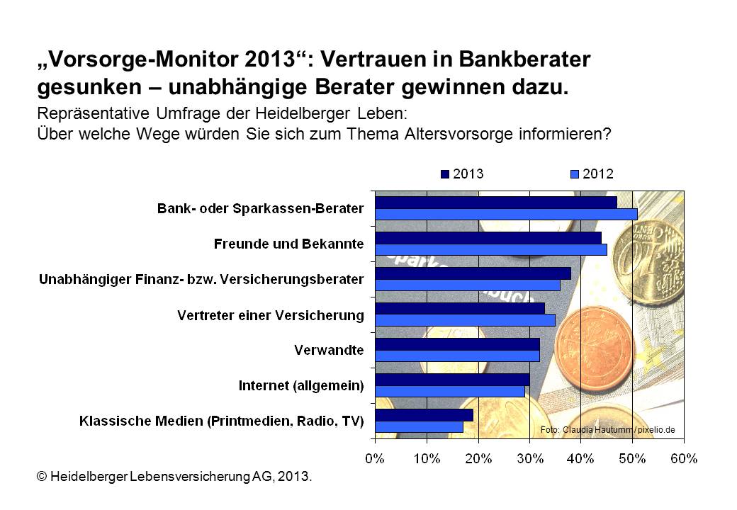 "Vorsorge-Monitor 2013": Unabhängige Berater, Internet und klassische Medien gewinnen dazu - Social Media spielt noch immer kaum eine Rolle