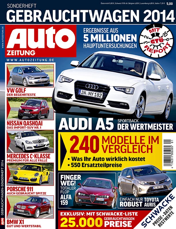 Das Sonderheft ?Auto Zeitung Gebrauchtwagen 2014 mit GTÜ-Report? ist ab 11. September für 5 Euro im Zeitschriftenhandel erhältlich.