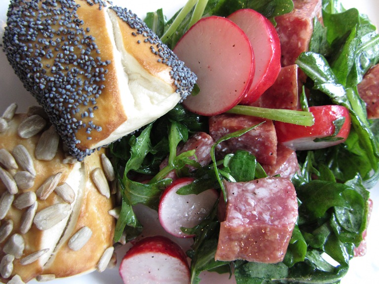 Ab Oktober gibt es dazu das passende Monatsbrötchen. Bestehend aus einem Sesam Bagel mit Obatzter, mit Radi und Tomaten garniert.