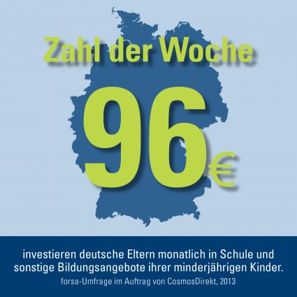 "Zahl der Woche: 96 Euro investieren deutsche Eltern monatlich in Schule und sonstige Bildungsangebote ihrer minderjährigen Kinder (BILD)"