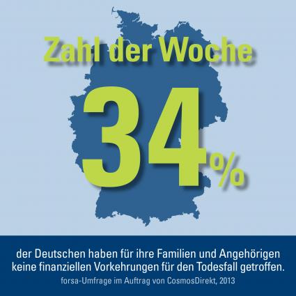 "Zahl der Woche: 34 Prozent der Deutschen haben für ihre Familien und Angehörigen keine finanziellen Vorkehrungen für den Todesfall getroffen (BILD)"