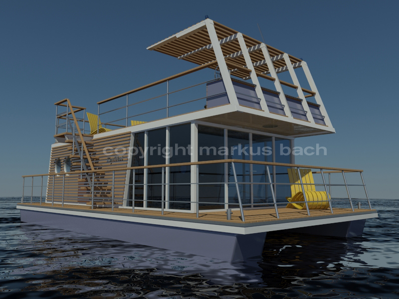 schaffen. Sei es als ausbaufähiger Rohbau für begabte Handwerker oder als schlüsselfertiges Wohnschiff mit 100 m2 Wohnfläche oder mehr auf zwei Etagen als erstem Wohnsitz. Die Zeiten der schwimmenden "Kisten" sind vorbei. Der Designfaktor ist nun auch in diesem Wassersportsegment angekommen und hat sich zum entscheidenden Marketinginstrument entwickelt. Nach der Maxime "Wahrer Luxus ist bezahlbar!" ist mit dem Modell "Akaroa" inzwischen das dritte multifunktionale Design des berliner Unternehmens Wohnschiffe.com auf dem Markt. Perfekte Raumnutzung und maritime Details sowie eine solide Verarbeitung zeichnen dieses Katamaran-Hausboot mit ca.60 m2 Wohnfläche aus, welches sich für ein ruhiges Wochenende zu zweit genauso eignet, wie für einen mehrwöchigen Urlaubstörn mit Kindern und Freunden, oder ein Meeting mit Geschäftskunden auf der Spree. Kunden können im Vorfeld Ihre Wünsche und Ideen einfließen lassen oder mit dem Architekten zusammen ein völlig neues Design entwickeln. In der Werft fließen langjährige Erfahrungen im Hausbootbau in den Fertigungsprozess, der nach Baubeginn nur wenige Wochen in Anspruch nimmt. Die fertigen Boote sind auf Wunsch fahrbar, zertifiziert und können komplett eingerichtet werden. Auch Sonderwünsche, wie Solarpaneele zur Stromerzeugung und Glasbodenfenster sind möglich. Soll das Boot das ganze Jahr hindurch genutz werden, wird eine entsprechende Wärmedämmung berücksichtigt.Geheizt wird mit einem Kamin bzw. über eine Fußbodenheizung oder einer Infrarot-Yachtheizung. Der Transport kann auf Wunsch ebenfalls durch das Unternehmen übernommen werden.