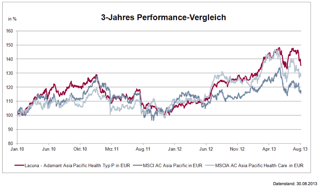 Vor diesem Hintergrund bietet das Regensburger Investmenthaus Investoren ein Fondsprodukt, das diese Chancen gezielt umsetzt. So investiert der Lacuna - Adamant Asia Pacific Health als einziger Investmentfonds Europas in das asiatisch-pazifische Gesundheitssegment. Aktuell übertrifft das Jahresplus unseres Fonds das des breiten asiatischen Marktes, so Hartauer. Auch über einen 3-Jahres-Zeitraum weist der Lacuna - Adamant Asia Pacific Health mit einem Performanceplus von 35 Prozent eine bessere Entwicklung auf.