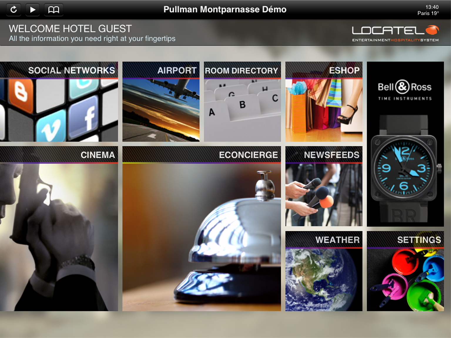 Die MOBILITY BY LOCATEL-Anwendungen sind modular und kundenindividuell anpassbar, um schnell die Anforderungen jedes Hotels erfüllen zu können. Sie werden über eine gemeinsamen Cloud-Management-Service für TV und mobile Inhalte erstellt und aktualisiert.