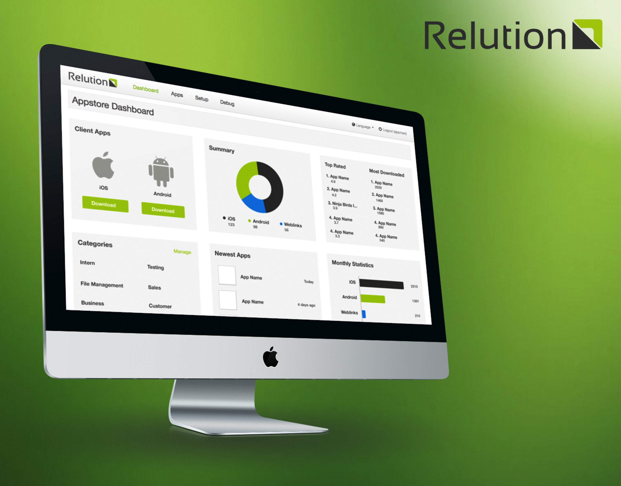 "Relution" ermöglicht die einfache und zentrale Verteilung mobiler Apps an bestimmte Mitarbeiter oder Mitarbeitergruppen. Je nach Definition werden die Apps an unternehmenseigene mobile Endgeräte oder im Rahmen von Bring-Your-Own-Device-Szenarien an die eigenen Endgeräte der Mitarbeiter distribuiert. Damit entlastet der Enterprise Appstore von M-Way Solutions die IT-Abteilungen, die Anwendungen nicht mehr einzeln auf die Endgeräte verteilen müssen. Zeitintensive Konfigurationsprozesse werden so beschleunigt, die Administrationskosten gesenkt. Über "Relution" können alle relevanten Arten von Apps verteilt werden.