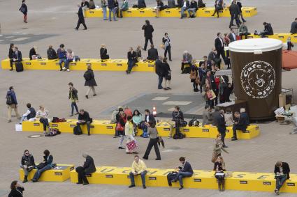 "In der Messepause auf die Dudeninsel / Dudeninstallation auf dem Freigelände der Frankfurter Buchmesse (BILD)"