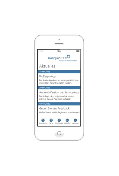 (IINews) - (Stuttgart) - Ab sofort ist die neue App der BioRegio STERN Management GmbH (http://www.bioregio-stern.de/) sowohl im iTunes- als auch im Google Play-Store kostenlos verfügbar. Sie liefert Neuigkeiten und Fachinformationen aus der BioRegion STERN direkt auf das Smartphone oder Tablet. Die Applikation für Mobilgeräte bietet darüber hinaus Unternehmern, Institutsmitarbeitern, Forschern und Interessierteneine Reihe von Dienstleistungen, welche die Kommunikation und das Netzwerken in der Region unterstützen.