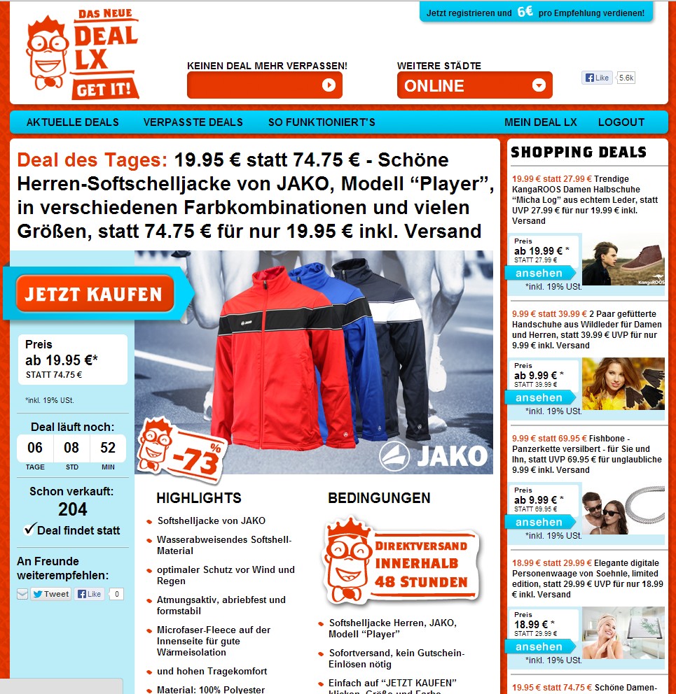 Was ist das Erfolgsgeheimnis der neuen DEALLX GmbH? Käufer schätzen zum einen die hochwertigen Markenprodukte, die auf DEALLX zu extrem günstigen Preisen, mit bis zu 80% Rabatt gegenüber dem UVP der Hersteller, zu bekommen sind. Und sie kaufen gern bei DEALLX ein, weil es so einfach ist. Kein umständliches Einlösen von Gutscheinen wie auf anderen Deal-Portalen üblich, sondern Kaufen per Klick. Größe und Farbe auswählen, Zahlungsweise, fertig.
