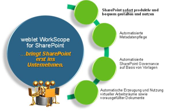 Die in-GmbH bietet mit ihrer eigens entwickelten Software "weblet WorkScope for SharePoint" eine intelligente Methodik: