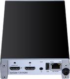 Das eyeGATE encodiert DVI- und HDMI-Signale mit einer Auflösung von bis zu 1920x1200 Pixeln und 60Hz über eine qualitativ hochwertige H.264 Kompression mit einem Advanced & High Profile. Mit dem integrierten Chroma Subsampling Filter erreicht das eyeGATE dabei eine Qualität, die einem 4:2:2 Abtastverhältnis entspricht. Zudem unterstützt das eyeGATE Multicast und Unicast. Der Stream kann von jedem Decoding-fähigen Gerät im Netzwerk aufgegriffen werden. Das kann ein netPIX Grafik-Controller sein, ein Display mit integriertem IP-Decoder oder jeder Benutzer-PC mit installierter eyeCON-Client-Software. Die robuste Hardware des eyeGATEs bietet ein Echtzeit-Encoding von DVI- und HDMI-Signalen und ist für einen 24/7-Betrieb ausgelegt. Die Signalerkennung läuft automatisch. Zusätzlich überträgt das eyeGATE auch ein Audiosignal.