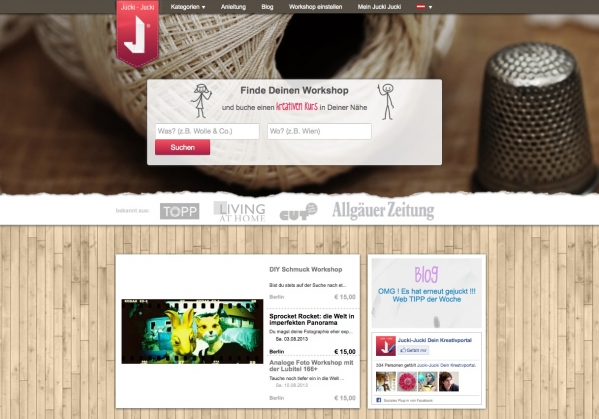 (IINews) - Ab sofort ist das kostenlose Buchungsportal für kreative Workshops und Kurse Jucki-Jucki.com auch in Österreich und der Schweiz verfügbar. Für mehr Übersicht sorgen die neugestalteten Kurskategorien. Vom 15. Bis 17. November 2013 agiert die Plattform als Premiumpartner bei der Publikumsmesse "Kreativ Tage Berlin".