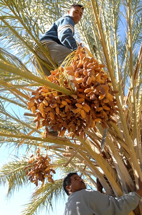 (IINews) - Es ist wieder soweit: Anfang Oktober sind die Datteln reif. Die Bauern ernten sie und Arbeitskräfte vor Ort bereiten sie sorgfältig für den Export vor. Nach dem Motto "weltweit ab Hof" ermöglicht es Gebana (http://www.gebana.com/) *, Konsumentinnen und Konsumenten aus Europa erstklassige** Datteln im gebanashop (http://gebanashop.com/) vorzubestellen. Gebana, die Schweizer Organisation für Fairen Handel, kauft den Kleinbauern die Früchte aus biologischem Anbau zu fairen Konditionen ab. In den Verarbeitungsanlagen in Kebili werden sie verlesen, gereinigt, verpackt und anschließend verschifft.