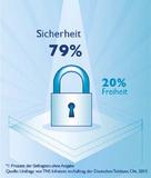 Die deutschen Internetnutzer schätzen Freiheit im Internet. 38 Prozent der von TNS Infratest Befragten bewerten Freiheit, also die Option, die Möglichkeiten der digitalen Welt ohne Kontrollmechanismen auszuschöpfen, als sehr bzw. äußerst wichtig. Wenn sie aber zwischen dieser Freiheit und Sicherheit, also dem Schutz ihrer Daten vor Angriffen und Missbrauch, wählen müssen, entscheiden sich 79 Prozent der Deutschen für die Sicherheit, nur jeder Fünfte bevorzugt auch im direkten Vergleich die Freiheit.