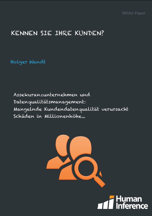 Was das Ganze so kompliziert macht: Häufig hat ein Kunde mehrere Versicherungen bei einer Gesellschaft abgeschlossen, die dort aber von unterschiedlichen Sachbearbeitern (im Zweifelsfall mit verschiedenen IT-Systemen und Kundendatenbanken) betreut werden. Eine einheitliche Sicht auf die Kunden herzustellen, die von allen Mitarbeitern genutzt werden kann, ist also kein leichtes Unterfangen. Das kostenlose Whitepaper "Kennen Sie Ihre Kunden?" von Human Inference betrachtet die verschiedenen Bereiche, in denen die Kundendatenqualität eine Rolle spielt - wie z.B. Marketing, Vertrieb, Controlling oder Geschäftsplanung. Aber auch Bereiche wir Kundenbeziehungsmanagement (CRM), Big-Data-Analysen oder Business Intelligence werden darin berücksichtigt.