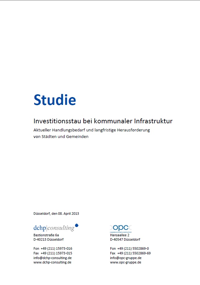 Die Folgen unterlassener Infrastrukturinvestitionen sind bereits heute in vielen Städten und Gemeinden in Deutschland sichtbar: Der Ersatzbedarf ist sprunghaft angestiegen, die lokale und regionale Wirtschaft leidet unter Produktivitätsverlusten, eine veraltete Infrastruktur gefährdet zunehmend die Nutzer und die Umwelt. Diese Investitionsdefizite bringen für die Kommunalfinanzen schon in absehbarer Zeit erhebliche Probleme mit sich. Nur eine strategische Herangehensweise kann diese Zwangslage verbessern.