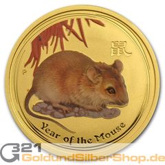 Die colorierte Variante der Lunar II Maus Goldmünze 2008 ist jetzt bei 321goldundsilbershop erhältlich