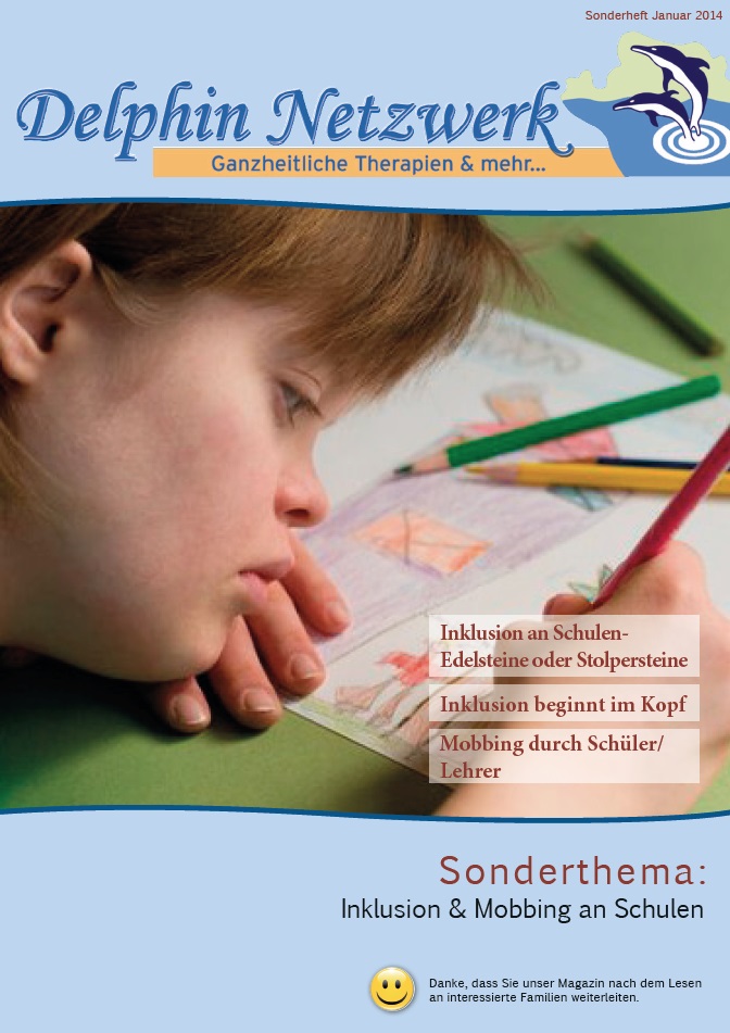 Mit der Idee, Kinder mit und ohne Handicap gemeinsam lernen zu lassen, haben sich auch die Anzahl der Mobbing-Fälle bei unseren Familien erhöht. Die Kehrseite ist somit, dass die ursprünglich gut klingende Idee der Inklusion auch etliche Schattenseiten und Stolpersteine in sich birgt. Mobbing belastet die Betroffenen und macht sie häufig krank. Das Delphin-Netzwerk hat es sich nicht nur zur Aufgabe gemacht bedürftigen Kindern zu helfen, sondern auch für das Wohl und die Rechte dieser Kinder zu kämpfen.