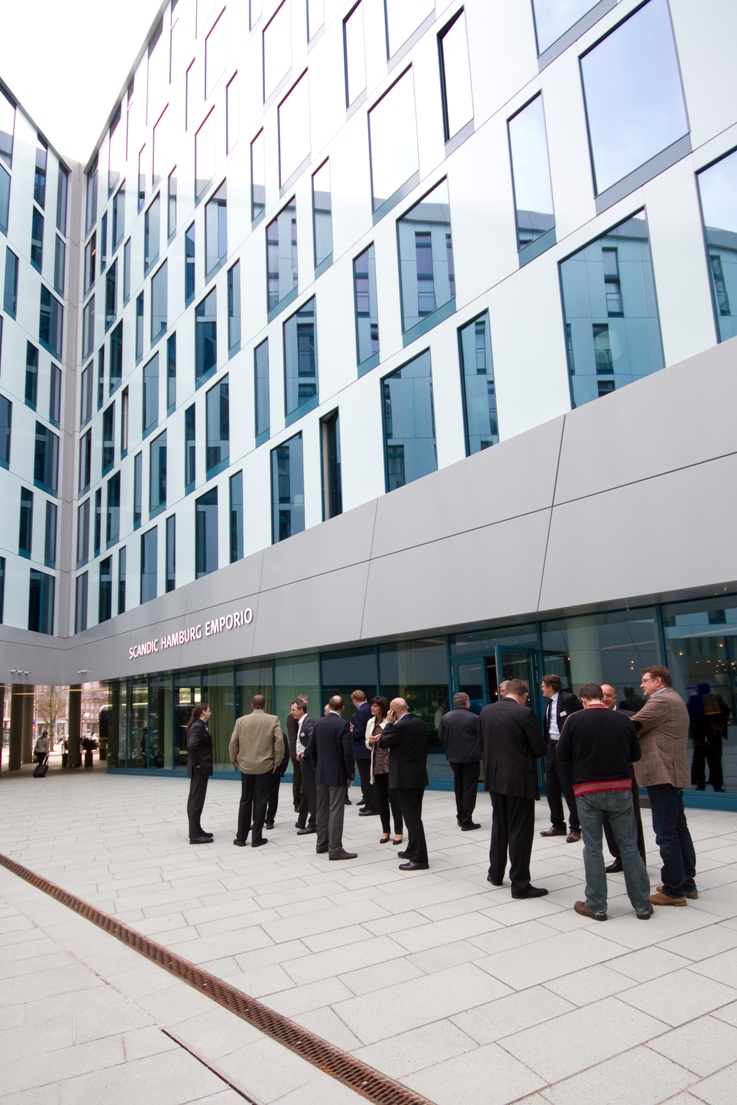 Gleiches zu Gleichem. So war es nicht ungewöhnlich, dass wir uns für die Bewerkstelligung des Übernachtungsaufkommens einer Hotelmarke bedienten, die hauptsächlich in nordischen Gebieten operiert aber auch grandiose Ableger auf deutschem Lande platziert. Das SCANDIC Hamburg Emporio, ein recht jungfräulicher Ort, erfüllte die für uns wichtigen Attribute und erklomm nahezu konkurrenzfrei einen der zu besetzenden Plätze innerhalb des Ensembles. Das Hotel belegte im Oktober 2013 den Location Award Platz 1 in der Kategorie Nachhaltigkeit und Innovation.
