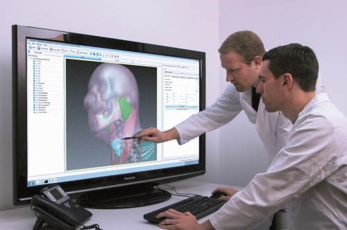Voraussetzung hierfür ist die Kenntnis über die genaue Lage und Form der verschiedenen anatomischen Strukturen. Hierzu gehören Rückenmark, Blutgefäße und Kehlkopf. ?Ein Radiologe musste bisher diese anatomischen Details in 3D-Bilddaten, wie wir sie durch einen Computertomographen erhalten, Schicht für Schicht sichten und die relevanten Organe sowie den Tumor mit der Maus markieren?, erklärt Dr. Stefan Wesarg vom Fraunhofer IGD. ?Das dauert mehrere Stunden.?