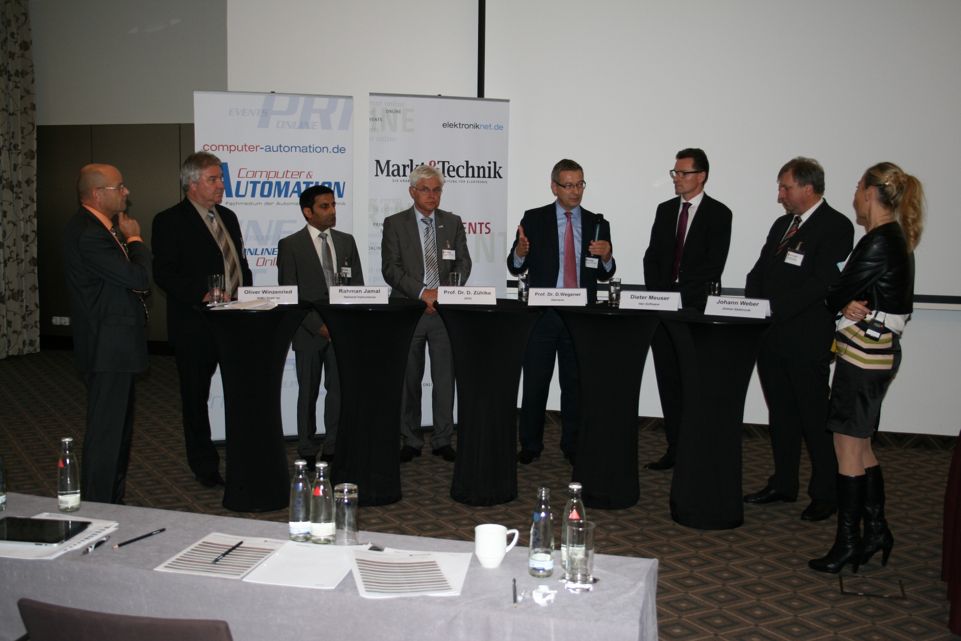 Der zentralen Fragestellung "Wie weit ist der Weg zur Realität der Industrie 4.0 und welche Weichen müssen dafür gestellt werden?" widmete sich Dieter Meuser in seinem Vortrag und der anschließenden Podiumsdiskussion. Er unternahm eine technologische Reise in das Zeitalter der dritten industriellen Revolution im Branchensegment "Telekommunikation" und warf einen Blick auf die Visionen der Industrie 4.0 und die damit einhergehenden realen Herausforderungen.