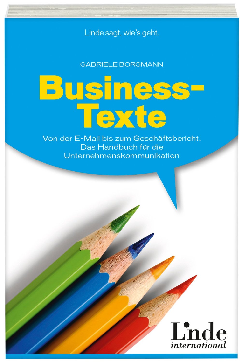 "Business-Texte" ist auf dem Buchmarkt erhältlich. Eine Leseprobe finden Sie auf Amazon (http://www.amazon.de/Business-Texte-E-Mail-Geschäftsbericht-Handbuch-Unternehmenskommunikation/dp/3709304903) oder auf RaumZeichen (http://www.raum-zeichen.de/business-texte.php)