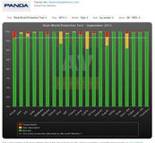 Der Test bildet das Szenario eines gewöhnlichen Users in einer alltäglichen Online-Umgebung (Webseiten mit schädlichen Inhalten oder Exploits, Ausführung von E-Mail-Viren, etc.) nach und misst die Fähigkeit der Sicherheitslösungen, aktive Bedrohungen zu beseiti-gen. In diesem Fall gelang es Panda Cloud Antivirus 100 % der Malware, der es ausgesetzt war, zu erkennen und zu beseitigen.