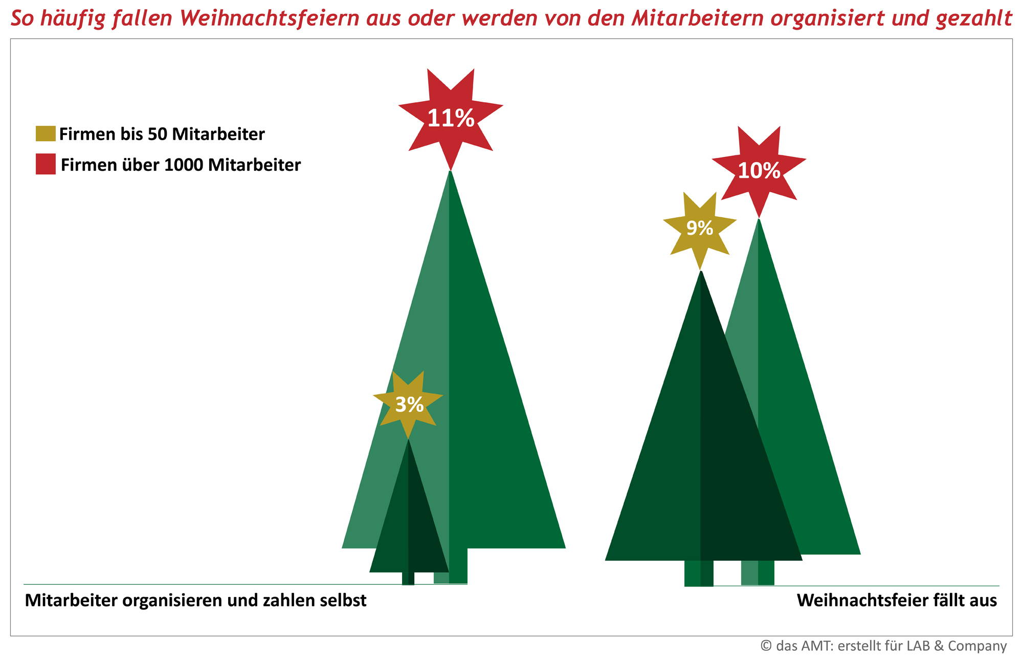 Gleichzeitig sind sich Deutschlands Führungskräfte einig: Weihnachtsfeiern sind eine schöne Tradition, wichtig fürs Betriebsklima oder eine wichtige Anerkennung für die Belegschaft. Das sagen 89 % der insgesamt 376 Top-Manager, welche die internationale Personalberatung LAB & Company im Rahmen ihres 30. LAB Managerpanels befragt hat.
